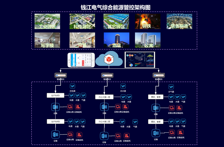 面向以设备能源消耗为主的能源用户进行能源管理;包括能源消耗的可视化、能源设备实时监测、能源计划管理、能源分析预测、优化节能方案等;